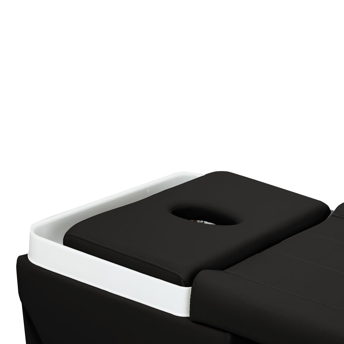 The adjustable headrest, with the option of extending and changing the angle of inclination, allows for a perfect adjustment to the user's needs, ensuring maximum comfort. The set also includes ergonomic cushions, including a headrest with a face opening, which expands the range of applications – from scalp treatments to massages and various body and facial therapies. These practical features make the lounger a versatile piece of equipment for beauty and wellness salons, combining customer comfort with the functionality needed by the professional.