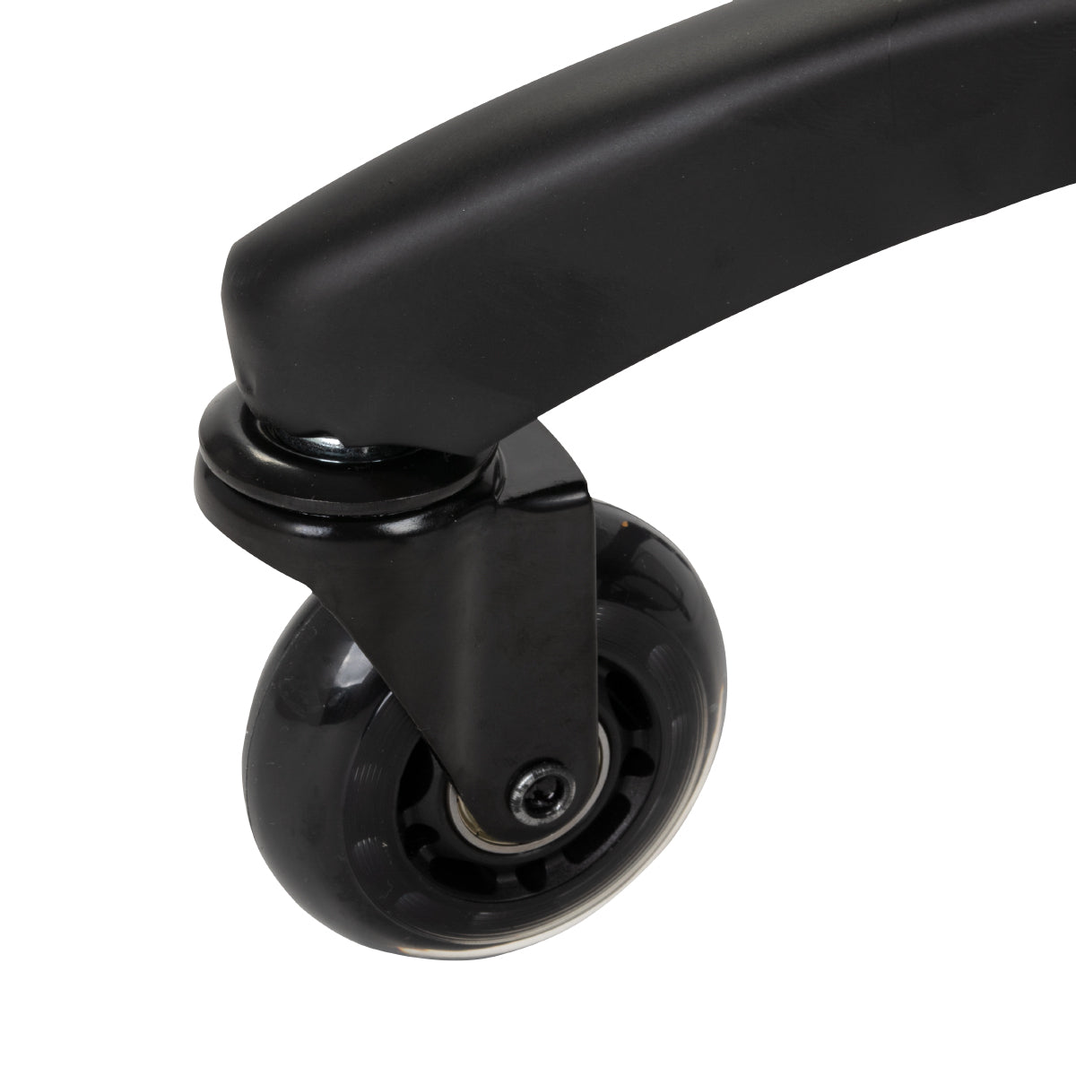 The seat height adjustment ranges from 56 to 76 cm, allowing for a customised position to the individual needs of the professional while performing services. The backrest supports the spine, ensuring comfort even during prolonged work. The full rotation mechanism increases freedom of movement, resulting in greater comfort and efficiency. Mobility is ensured by Roll Speed wheels with an iron core and polyurethane (PU) coating, which combine smooth movement with exceptional wear resistance. The use of ABEC-7 bearings makes the stool easy to move, significantly facilitates manoeuvring.