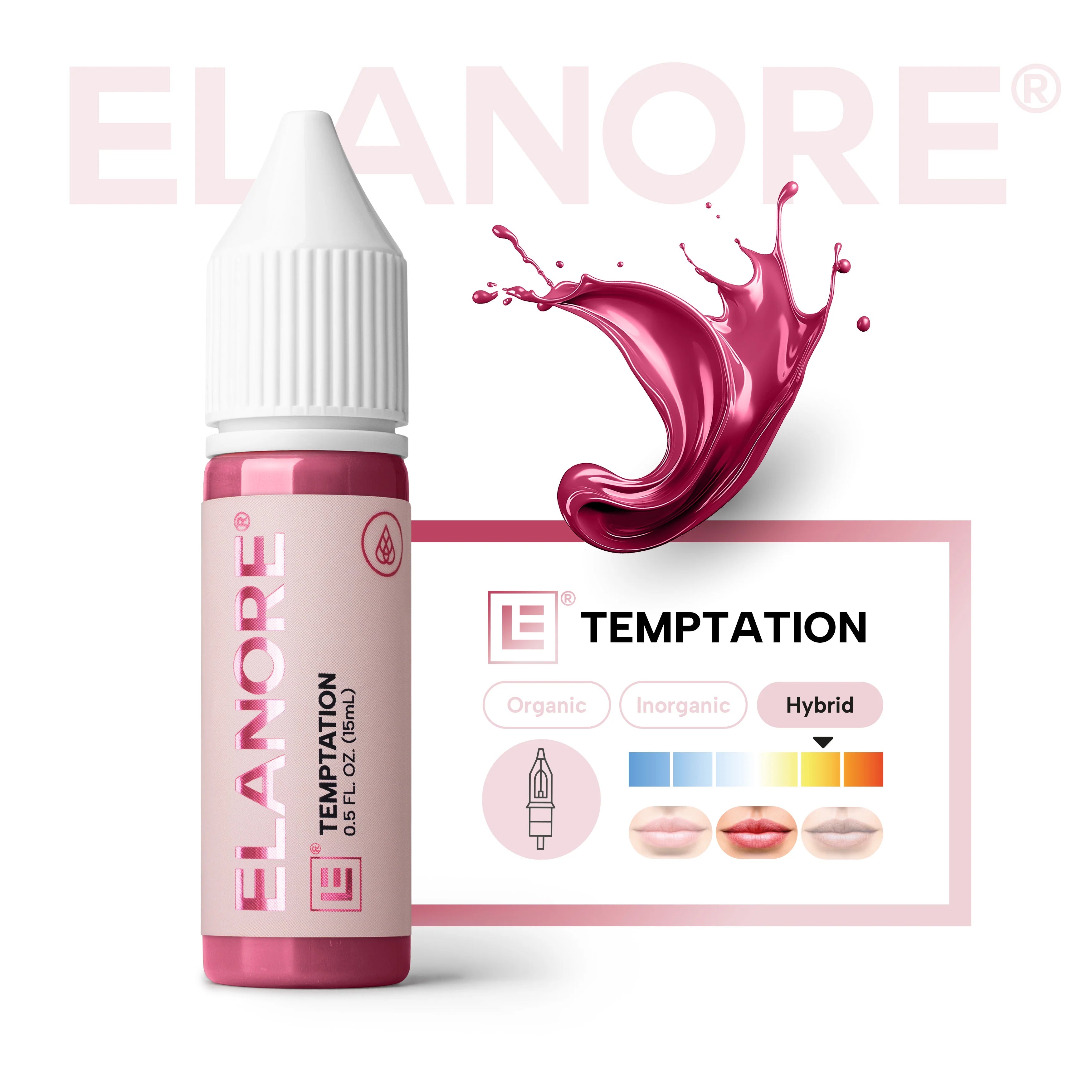 The Pigment x ELANORE Temptation is a hybrid lip pigment created for PMU artists seeking an intense, captivating red-pink tone with a modern floral twist. This striking shade instantly draws attention to the lips, offering a seductive, expressive look that works beautifully for both subtle enhancement and bold lip blush transformations. Whether you need to cover deeper lip tones or neutralize cool undertones, Temptation pigment delivers vibrant saturation with controlled, professional consistency.