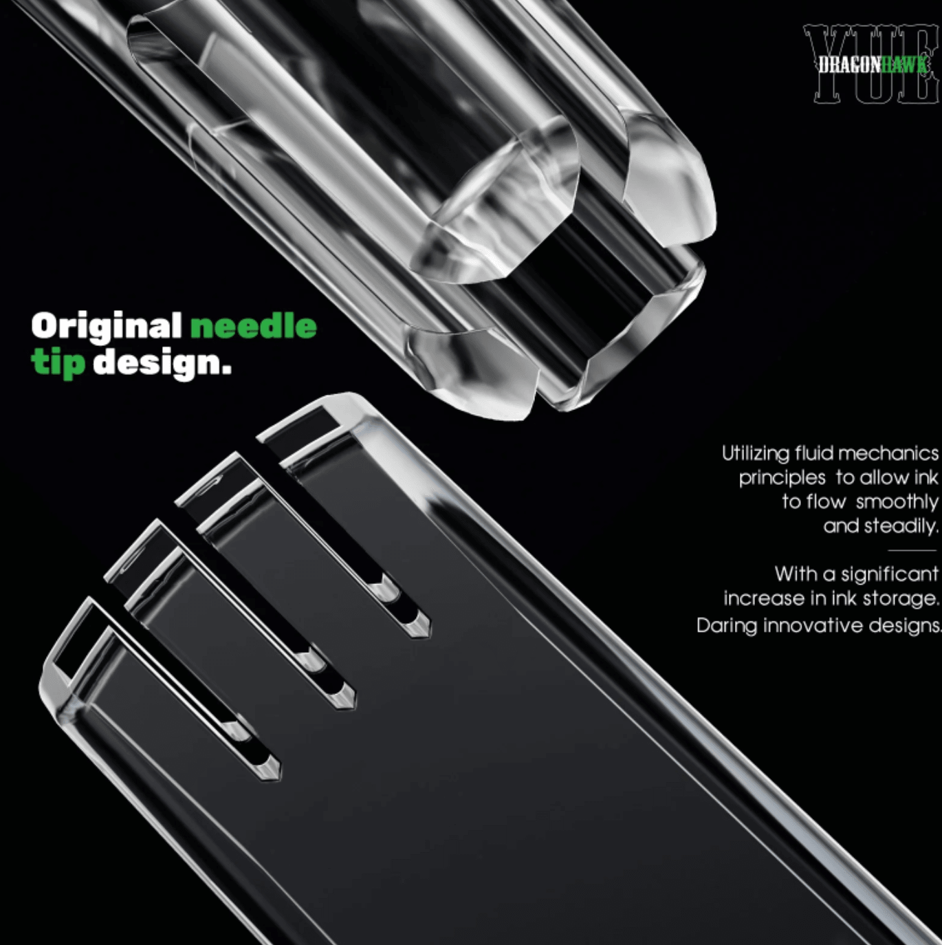- Unprecedented Piercing Length: Breaking traditional limits, the YUE cartridges provide an unprecedented piercing length with a single ink absorb. This innovation allows for extended tattooing distances without interruption, promoting efficiency in your workflow.