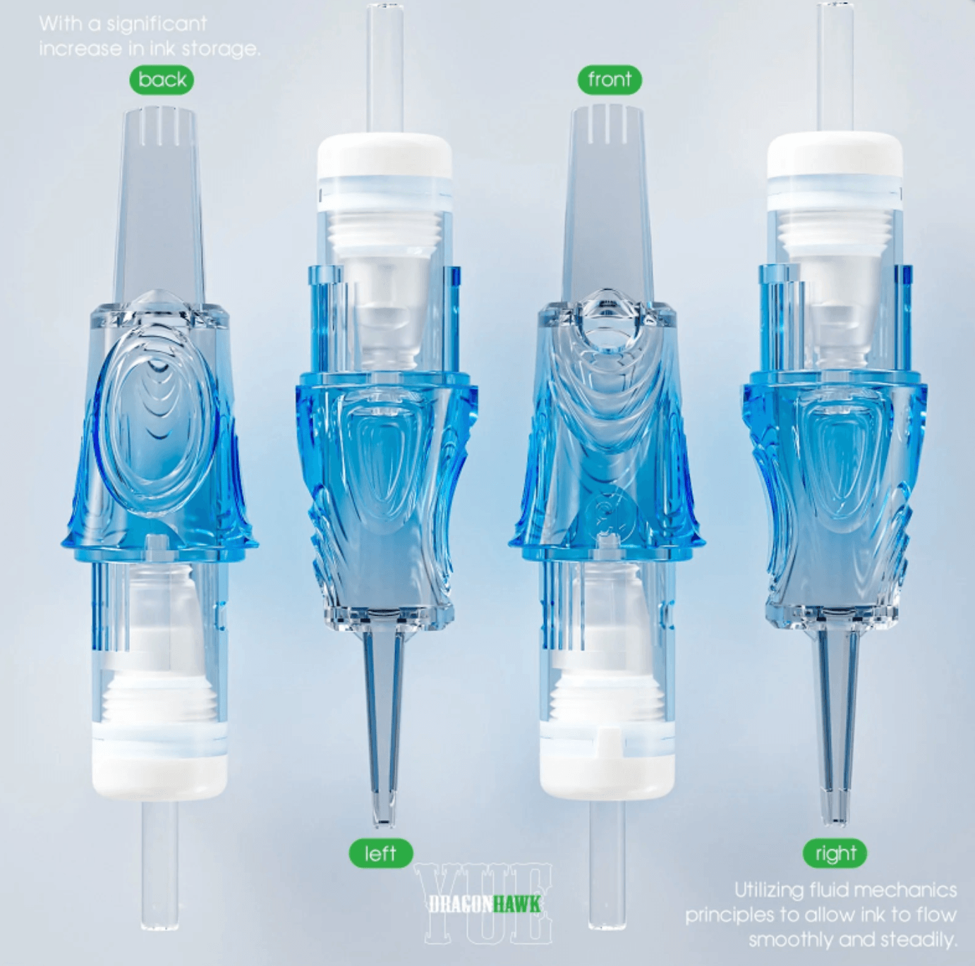 The MAST Dragonhawk Yue Tattoo And PMU Cartridges redefine the tattooing experience with their bold design and performance-driven features. Designed and perfected through three years of dedicated innovation by Master HENG YUE, these cartridges are the perfect tool for artists looking to elevate their craft and achieve stunning results.