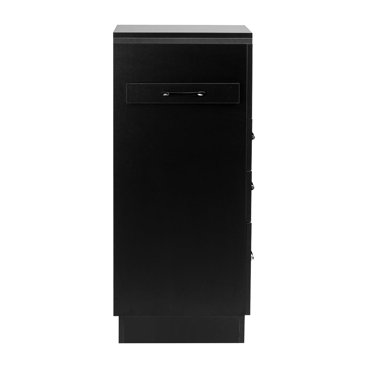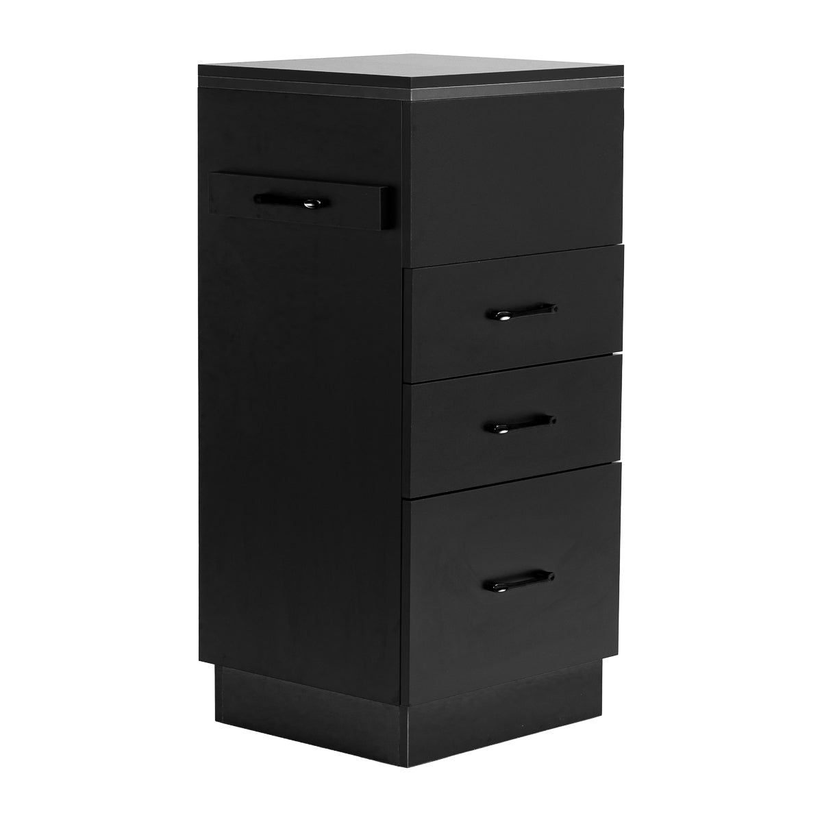 The classic black gives the helper a modern, prestigious character, which fits perfectly into both minimalist and more expressive arrangements. The solid construction ensures stability, while the smooth surface makes it easy to keep the furniture clean. The black handles not only emphasise the elegant design, but also ensure convenient opening of each drawer. It is a practical solution for a hairdressing salon, where order, convenient access to tools and aesthetics of the workstation matter.