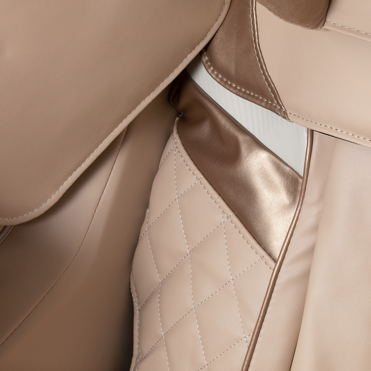 Soft imitation leather in shades of beige provides exceptional comfort of use and ease of cleaning. This material is not only aesthetically pleasing, but also resistant to moisture, which increases its functionality. The outer elements in rose gold combined with a structural finish in white tones give the chair a modern, stylish look. The compact form and subdued colours make the model fit harmoniously into various interior designs. Sakura Prime 108 is an excellent choice for people looking for everyday relaxation – especially after an intense day or demanding physical effort.