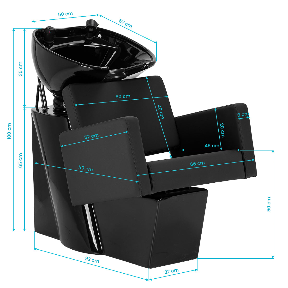 The deep ceramic bowl in shades of black minimises splashing of water and cosmetics during treatments. The adjustable angle of the bowl allows for precise adjustment to the customer's needs. Made of durable material, it is resistant to discolouration, scratches and chemicals, and its smooth surface makes it easy to keep clean. The ergonomically contoured collar provides comfortable head support, and the black plastic cover eliminates the feeling of cold when in contact with the ceramic.