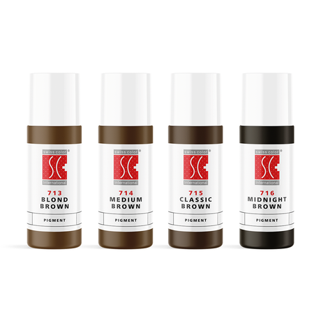 - 207 Ebony Brown, 206 Cocoa Brown, 205 Dark Brown, 204 Hazel Brown, 201 Honey Brown, 203 Chocolate Brown, 716 Midnight Brown, 715 Classic Brown, 714 Medium Brown, 713 Blond Brown Derma Pigment: These shades cater to every hair color and skin tone, from the lightest blondes to the deepest brunettes. The Classic Eyebrow Set and Eyebrow Pigments Set offer curated collections for versatile brow artistry.