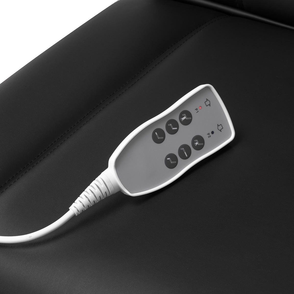 Convenient control with a wired remote control allows for precise adjustment of the chair in three planes: height adjustment, backrest angle and footrest setting. This range of adjustment makes it possible to tailor the position to the type of treatment being performed - in terms of both client comfort and specialist ergonomics. For ease of use, the remote control can be hooked onto handles located on both sides of the seat.