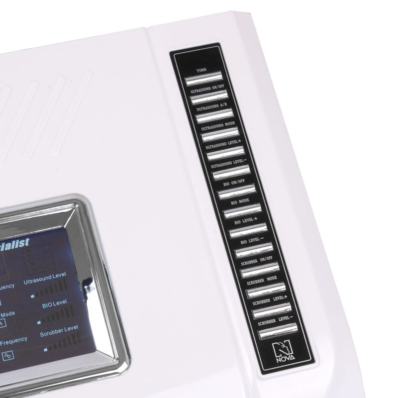 Ultrasonic function. Utilization of ultrasonic vibrations at a frequency of one million oscillations per second (1.5 MHz). The ultrasonic wave stimulates tissue and improves membrane permeability for collagen, smoothing wrinkles, eliminating lines, and firming the skin, giving it a younger and healthier appearance. Ultrasound generates heat from friction, which improves blood circulation, relaxes muscles, and helps reduce cellulite by removing excess fat. The device with 2 probes enables non-invasive lifting, smoothing and strengthening the skin using ultrasonic vibrations.