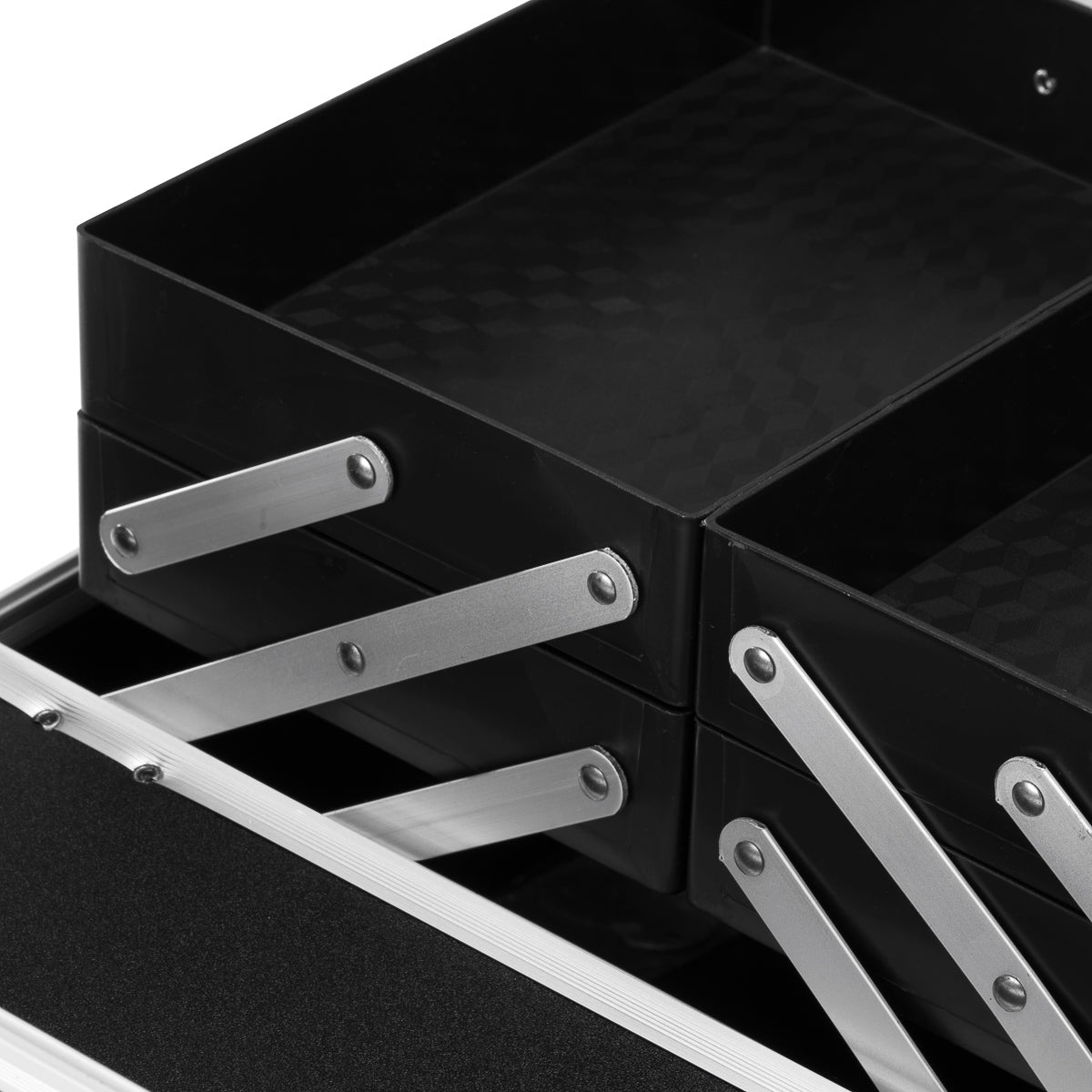 The elegant cosmetic case 44 is a combination of functionality and style, ensuring convenient organisation, safe storage and quick access to essential tools. It is perfect for everyday use, especially for mobile stylists. The spacious interior with pull-out shelves allows you to organise accessories, and the spacious chamber will hold a nail drill, preparations or other necessary tools.
