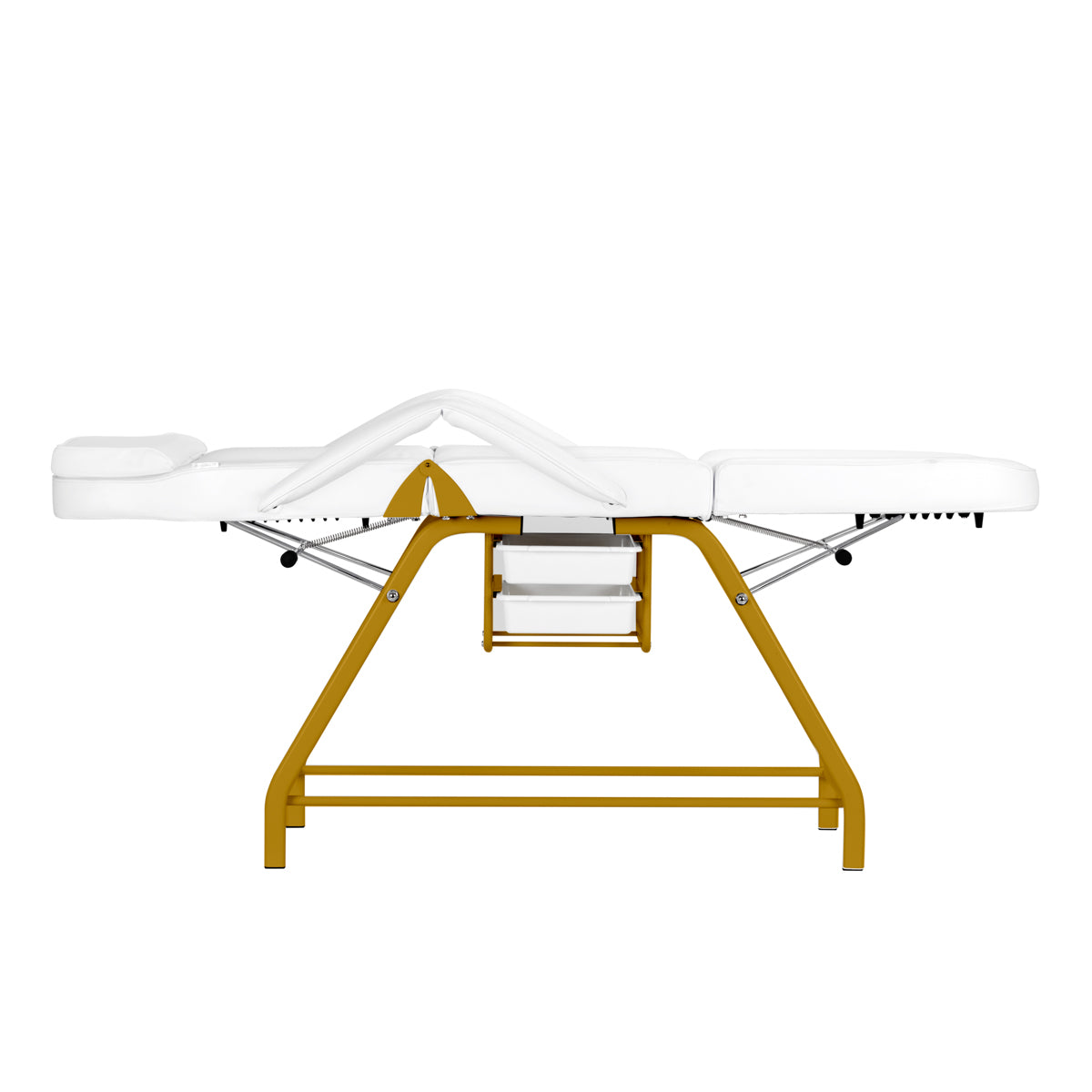 The armrests provide the user with adequate support and comfort during treatments. If necessary, they can be easily removed, so that the person performing the services has easier access to the areas on which he is working at the moment. These elements, which are divided in half, are movable, so they fit well when changing the backrest position.