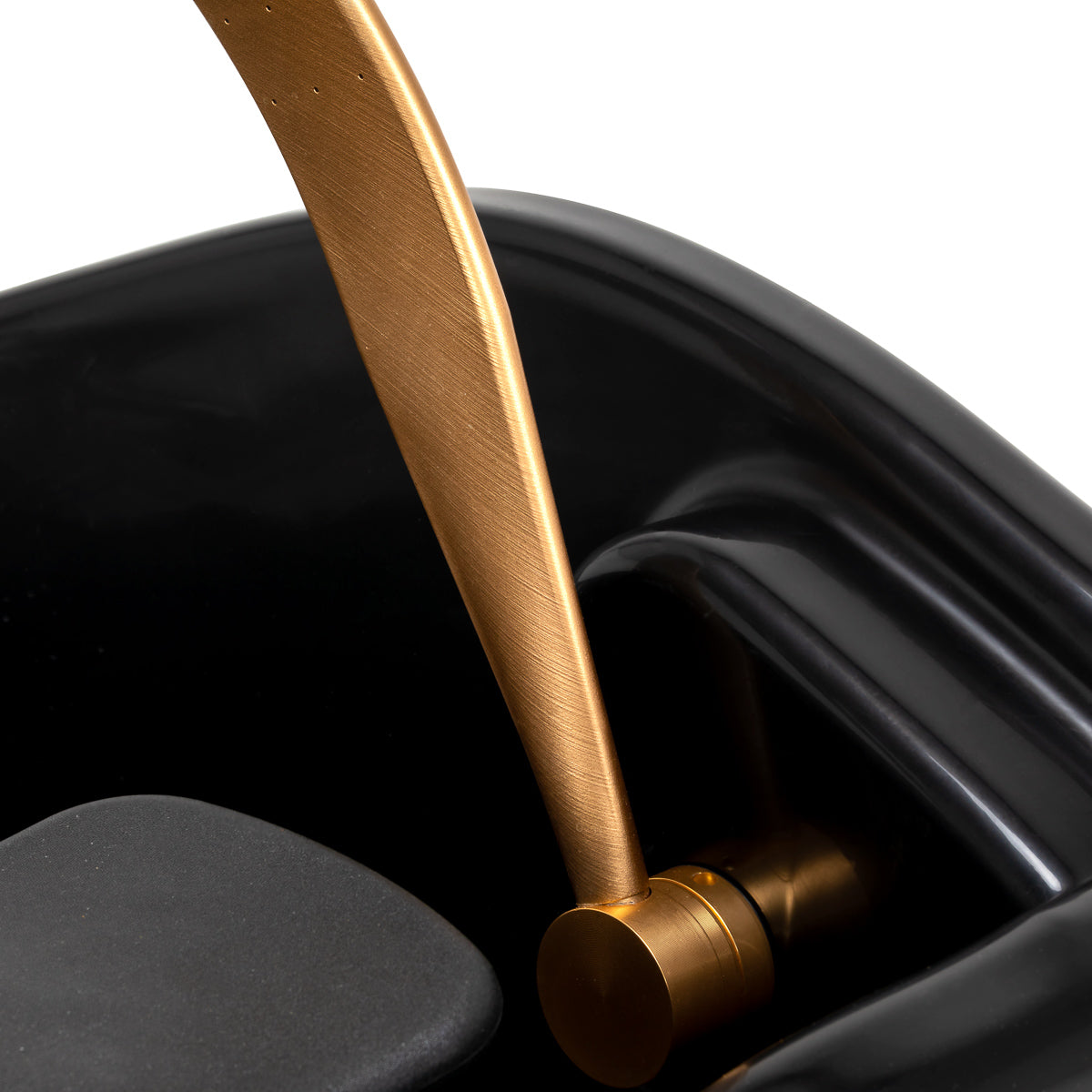 The deep plastic basin in an elegant shade of black effectively minimises splashing of water and cosmetics, ensuring a clean environment and comfortable working conditions. Made from durable materials, it is robust, and its smooth surface makes maintaining hygiene quick and hassle-free. The height-adjustable headrest allows for a perfect fit to the user’s needs, ensuring maximum comfort. The combination of functionality and modern design raises the standard of any professional space.