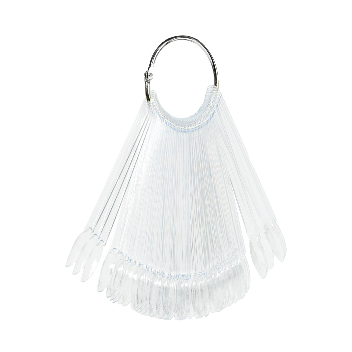 The transparent sample allows for an aesthetic presentation of all colors of classic and hybrid varnishes or gels. It consists of 50 individual tips of oval shape and in a size corresponding to real nails. It is fastened with a practical, detachable wheel, which makes it easy to store the whole thing. Each tip is made of durable plastic.